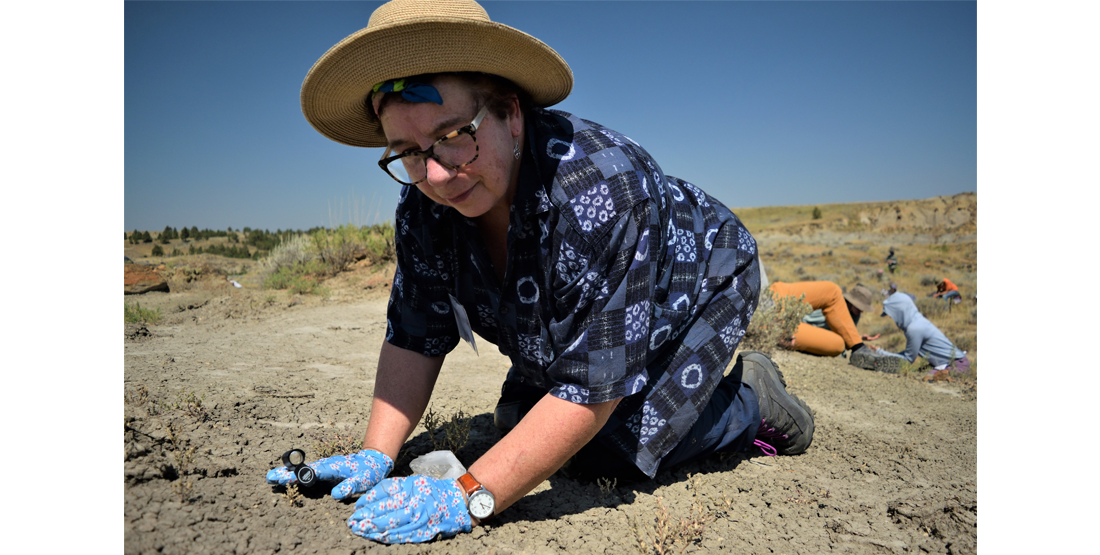 Affectionately known as ‘Dino Day,’ this day was all about macrofossils — larger fossils that can easily be seen by the unaided eye. Before heading off to collection sites, the DIG team met with the Thomas family, local ranchers who have worked closely with Hell Creek Project researchers to identify potential macrofossil sites. The day’s collection sites were all located on the Thomas ranch and the exposed bones were first identified by Les Thomas and his son while out checking on their cattle.